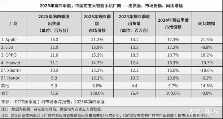 从阛阓份额看,2025年四季度苹果以21.2%的份额断档式普及国内手机阛阓。从增长看,大中华区38%的增速是统共区域中最高的。从用户基础看,公共25亿活跃缔造构筑了难以撼动的生态壁垒。谜底如故很露出了。